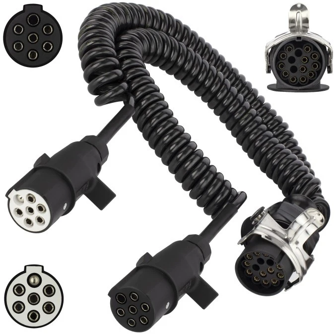 15. Spiralny adapter kablowy QLY-s do naczepy 24V wtyk 15-pin / 2 plastikowe wtyki 7-pin typu N+S 4,5m 240.93
