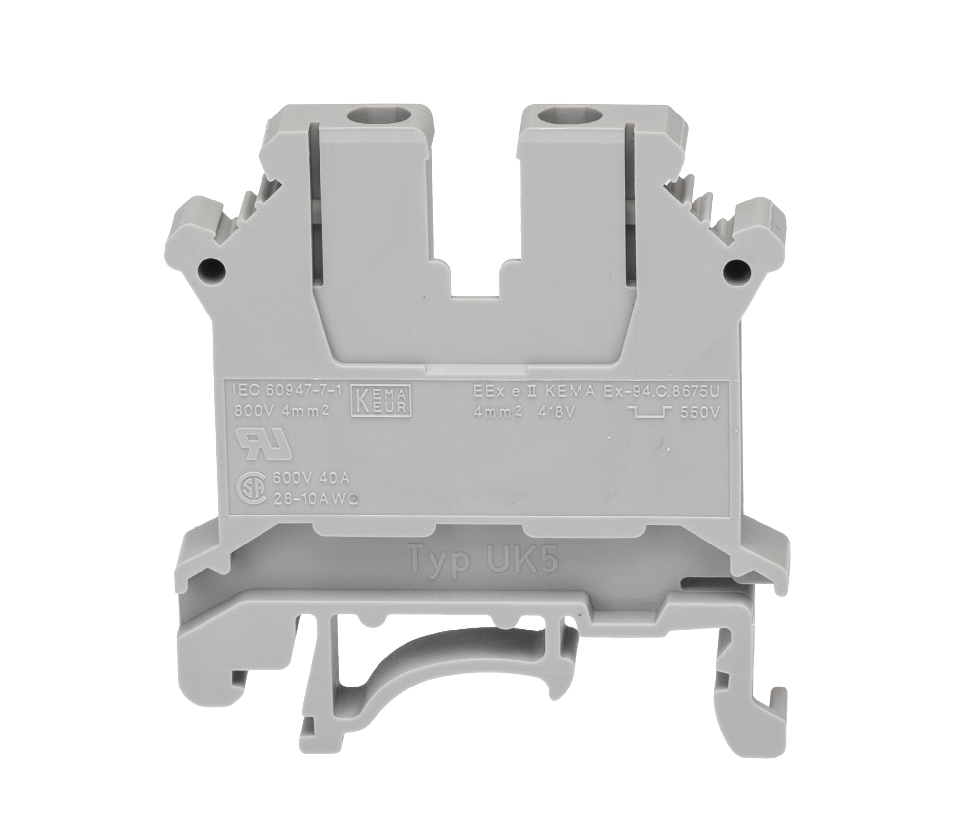 Blok zacisków przelotowych Phoenix Contact poziomy: Pojedynczy 24 → 10AWGŚruba UK 5 32A 800 V