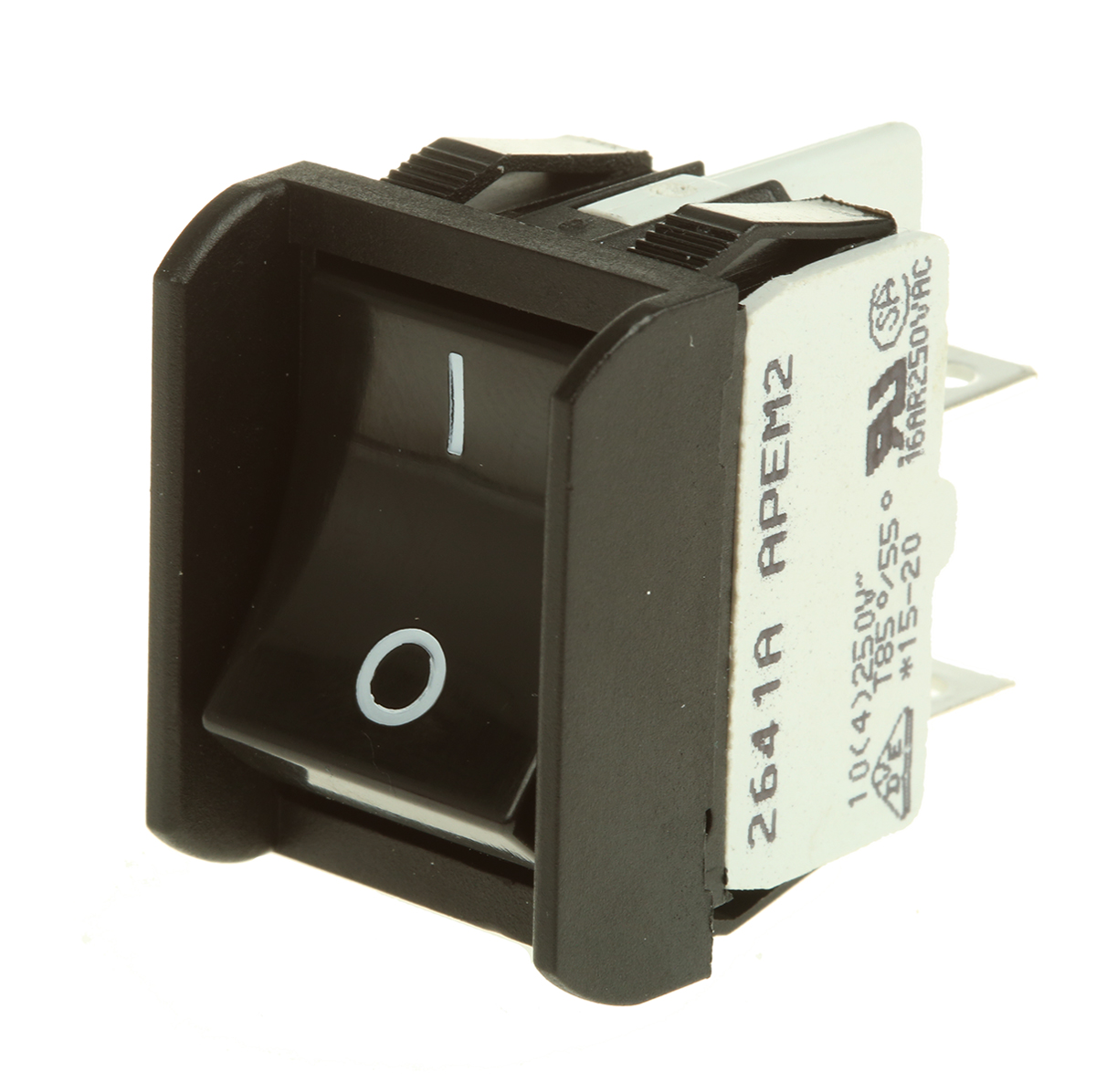 15. Przełącznik kołyskowy Wł.-wł. Nie 16 A DPDT Czarny APEM 72.06