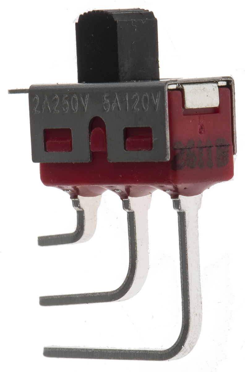 6. Przełącznik suwakowy, SPDT, montaż PCB, 120V ac, 3 A przy 120 V AC, -30 → +85°C, RS PRO 13.39