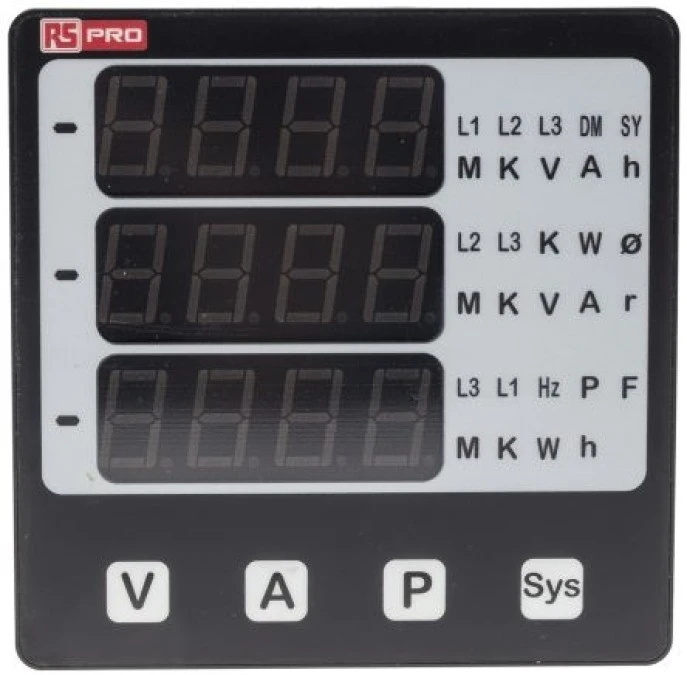Cyfrowy miernik panelowy wielofunkcyjny, 290 (Phase → Neutral) V ac, 45 → 65 (Frequency) Hz, 5 (Current)