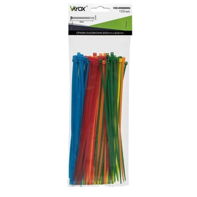 Opaski zaciskowe 2,5mm / 200mm mix kolorów 100 szt. VOZ-25200MIX Vayox