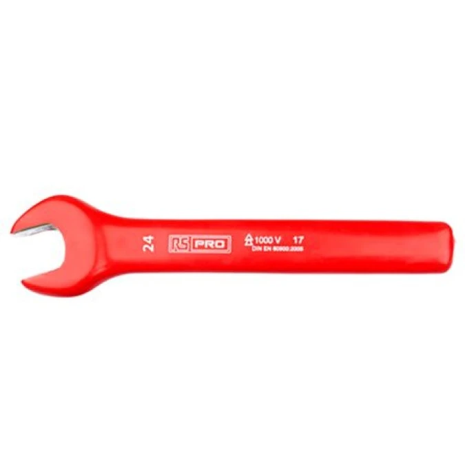 Klucz otwarty, roz. 17 mm, dł. 160 mm, materiał: Stal chromowo-wanadowa, VDE 1000V, RS PRO