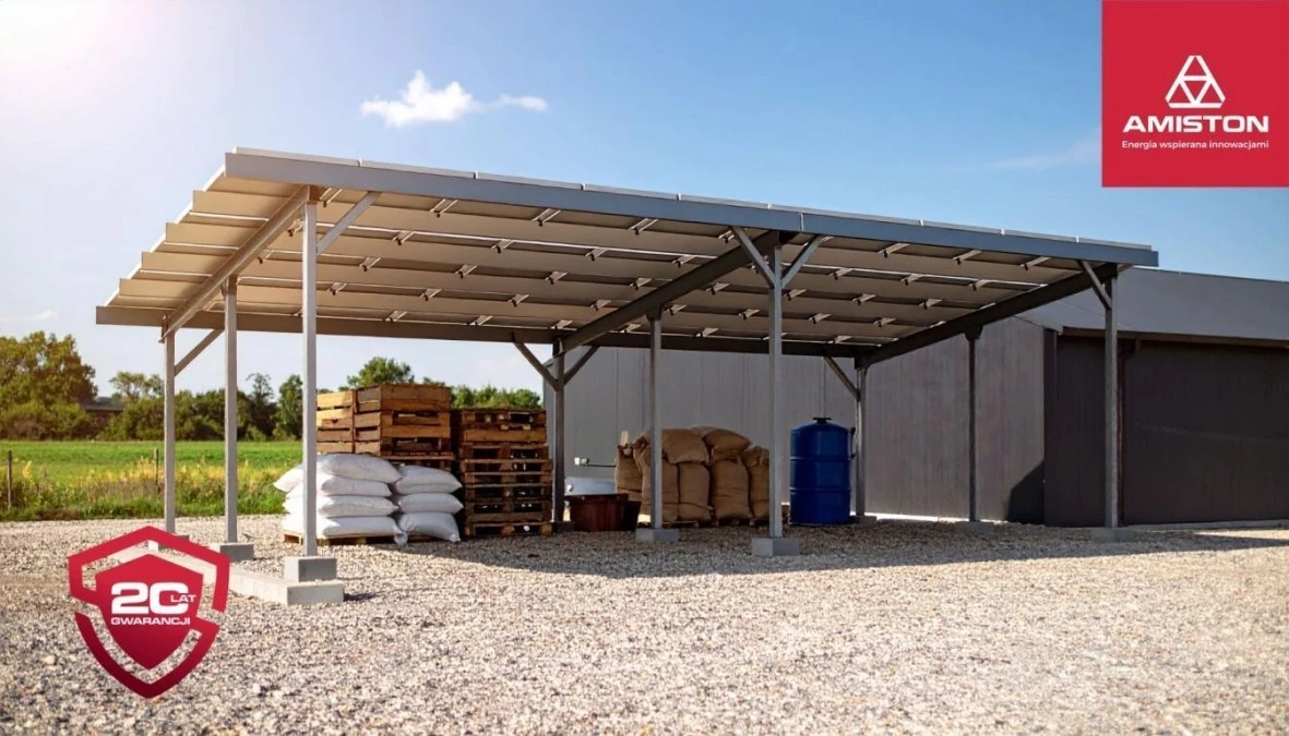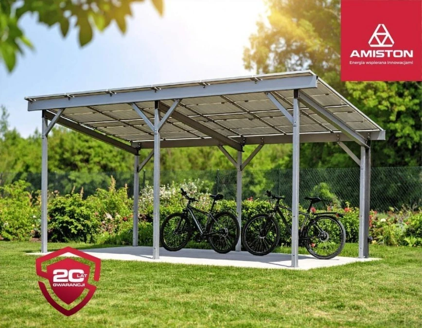 Wiata fotowoltaiczna IMPACT/V2/rozstaw 4.0/układ 2x5 (10 paneli)/uszczelniony dach srebrny
