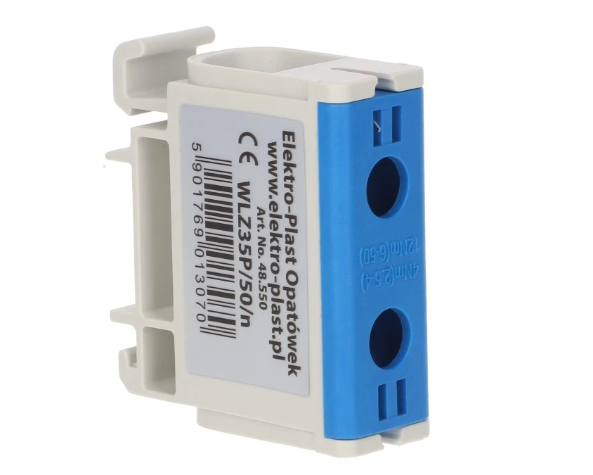 Blok rozdzielczy-odgałęźny 1-polowy AL/CU 2,5-50mm2 niebieski montaż płaski i na szynę TH WLZ35P/50/n 48.550