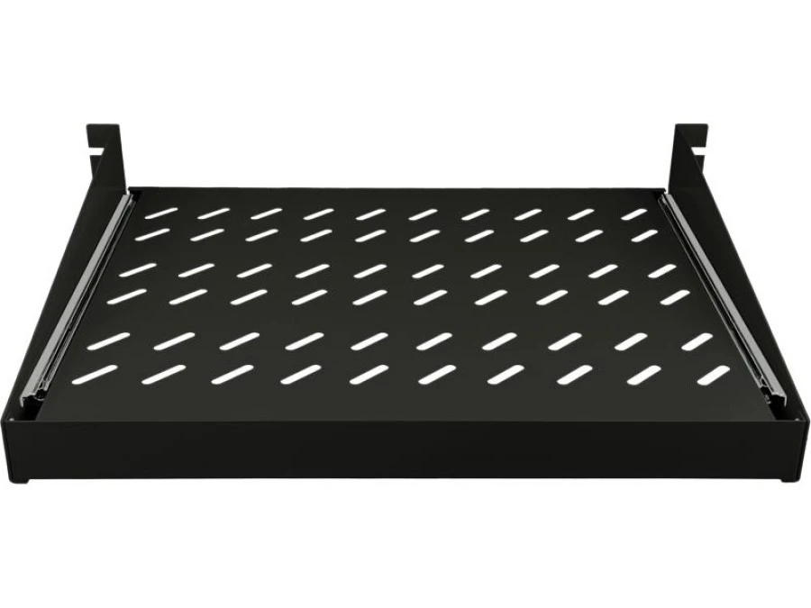 Półka wysuwana 19 1U głęb. 570mm, kolor czarny, 4 punkty mocowania