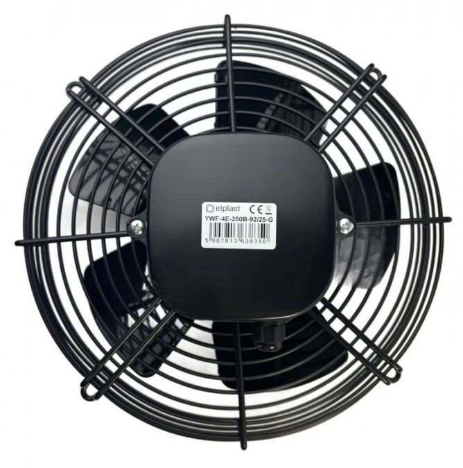 Wentylator ścienny przemysłowy okrągły YWF-2E-250B-92/25-G wyciągowy, fi 250 mm, 1 495 m3/h