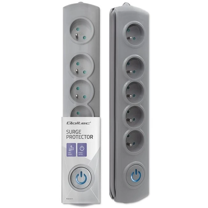 1. Qoltec Listwa zasilająca antyprzepięciowa 5 gniazd 3m Szara 44.18