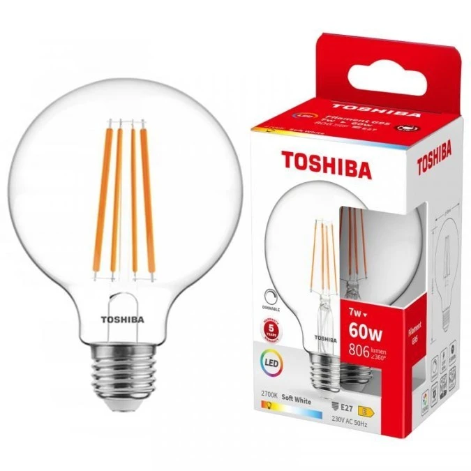 Żarówka LED E27 G95 7W = 60W 806lm 2700K Ciepła Filament Ściemnialna TOSHIBA