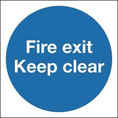 15. Znak wyjścia, Poliester, Niebieski, biały, Fire Exit, Keep Clear, Angielski, Opis: Nie zastawiać 39.61