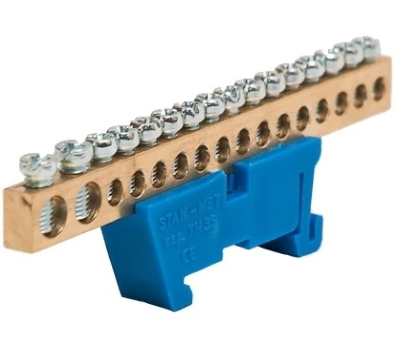 Listwa zaciskowa zerowa 15x16mm2 niebieska TH 35-15/N
