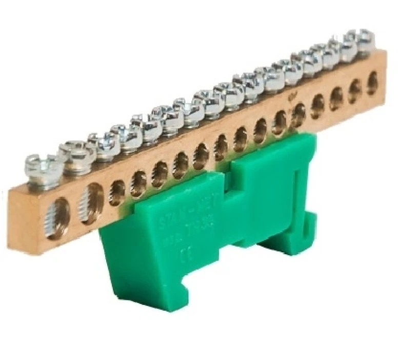 15. Listwa zaciskowa zerowa 16 x 10mm2 + 1 x 35mm2 zielona TH 35-D/Z 13.42