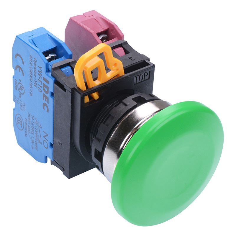 YW4B-M4E11G Green 22mm Metal Bezel Mushroom Momentary Push Button Switch 1NO-1NC IP65 IDEC