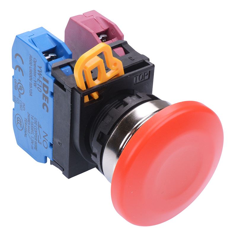 YW4B-M4E11R Red 22mm Metal Bezel Mushroom Momentary Push Button Switch 1NO-1NC IP65 IDEC