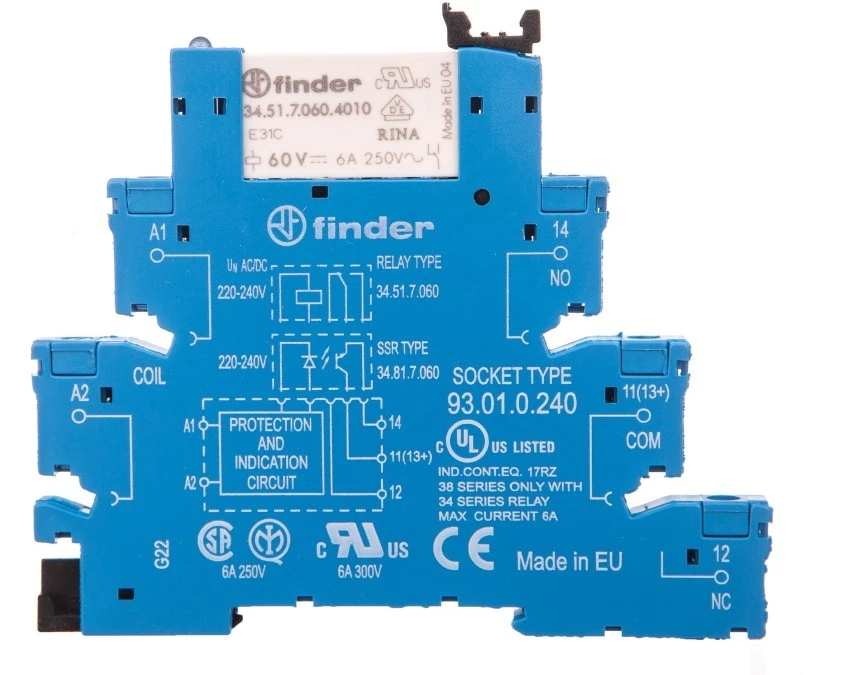12. Przekaźnikowy moduł sprzęgający 6,2mm, 1P 6A 220-240V AC/DC, styki AgSnO2, zaciski śrubowe, szyna DIN 38.51.0.240.4060 198.99