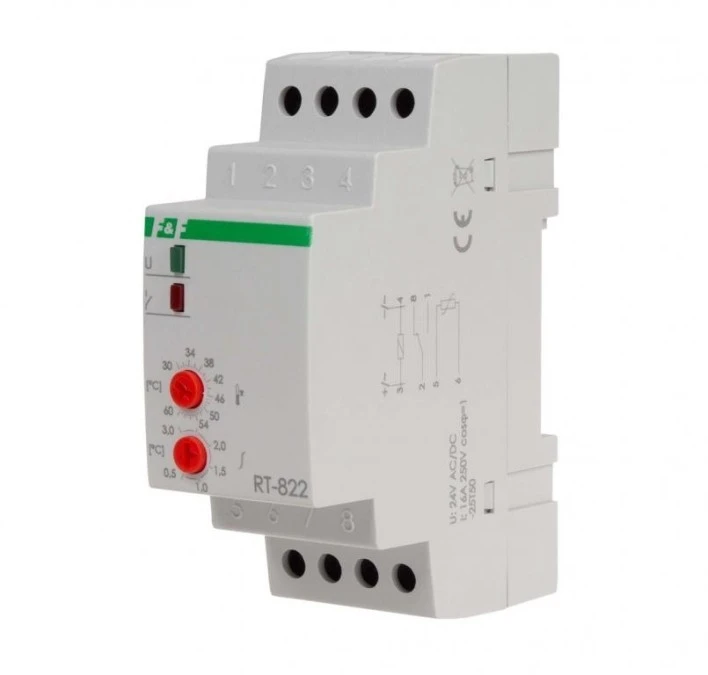 Regulator temperatury - zakres temperatur 30-60st.C - 24V DIN styk: 1NO/NC 230V AC RT-822-24V F&F FILIPOWSKI