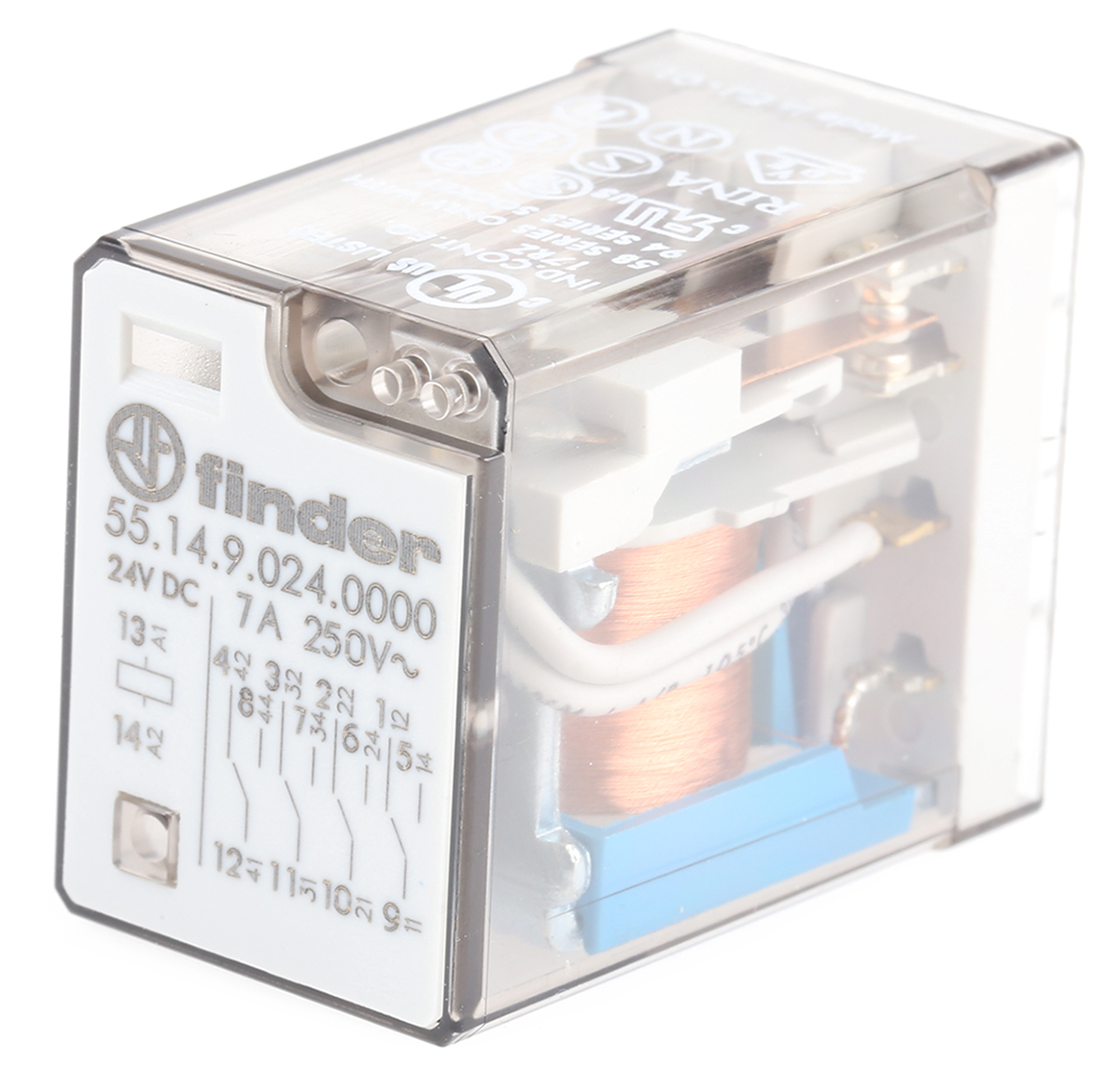 Przekaźnik mocy 24V dc 4PDT Finder 1W, montaż PCB +600Ω Otwór przezierny