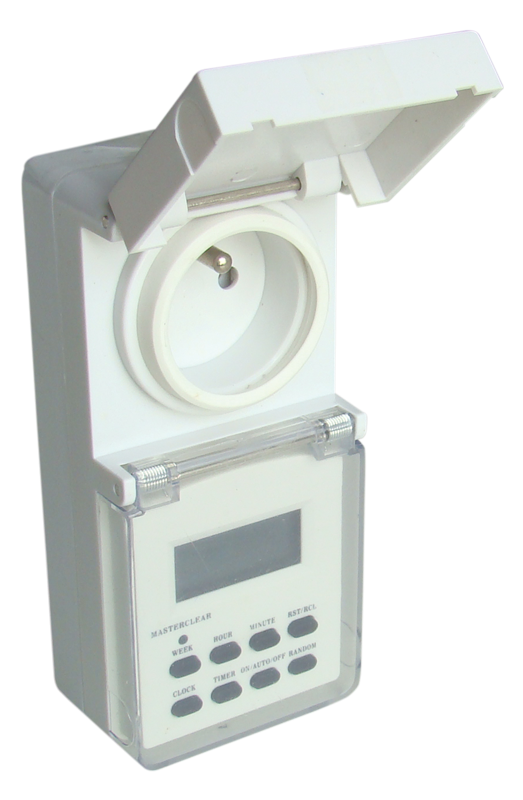 Programator tygodniowy z osłoną do gniazdka z bolcem IP44 Tracon