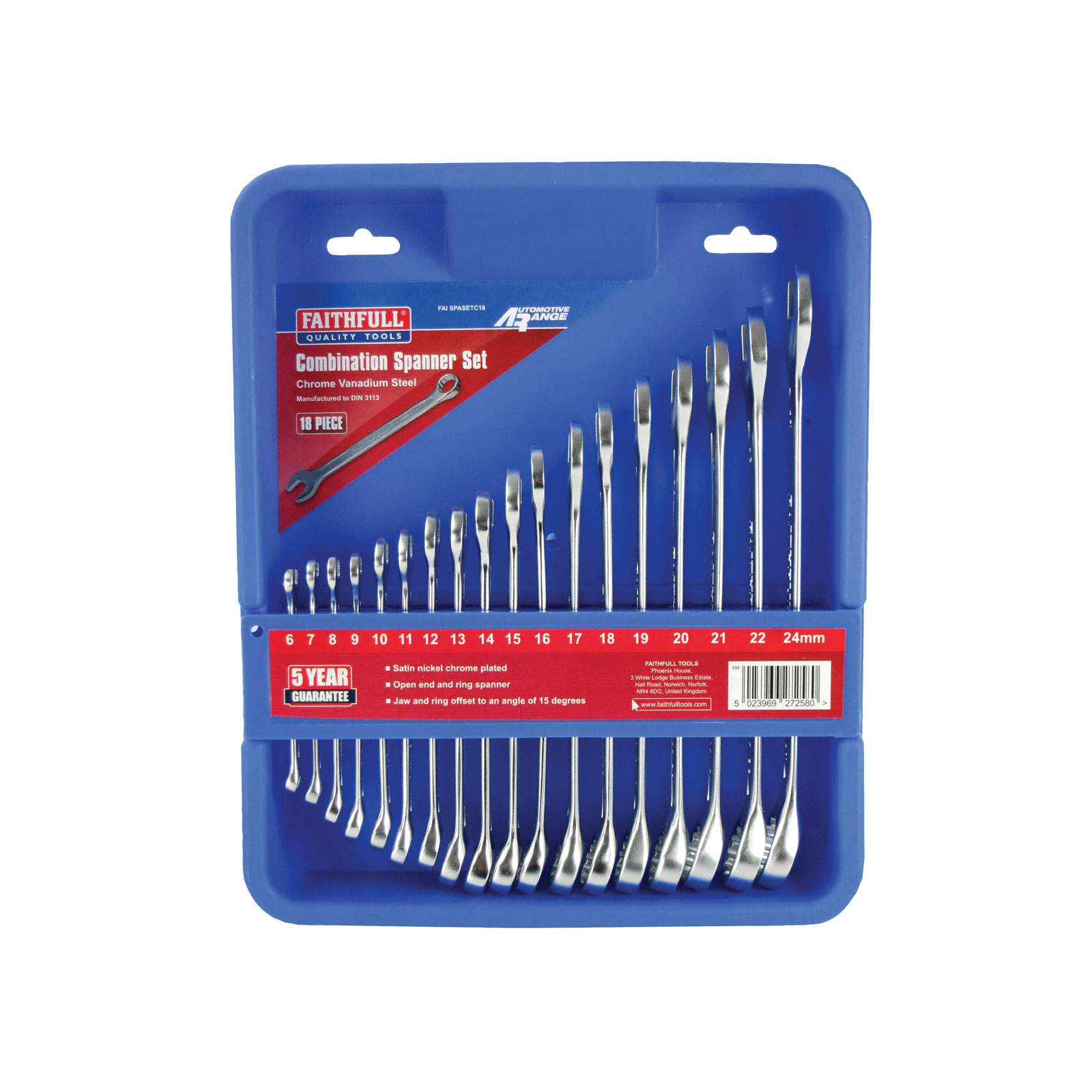10. Faithfull FAISPASETC18 Chrome Vanadium Combination Spanner Set, 18 Piece 266.88