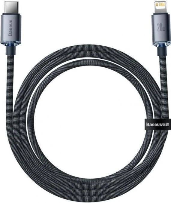 KABEL USB-C / Lightning iPhone Baseus Crystal CAJY000301 2m 20W PD QC CZARNY W OPLOCIE PREMIUM