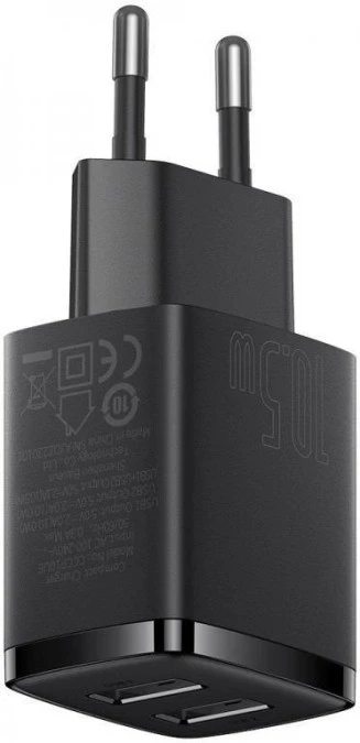 ŁADOWARKA SIECIOWA Baseus Compact Charger CCXJ010201 10.5W 2x USB-A CZARNA