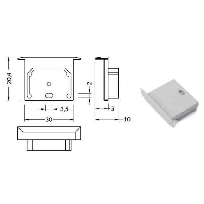 1. Zaślepka do profil LINEA-IN20 biała E4990001 /1szt/ 1.09