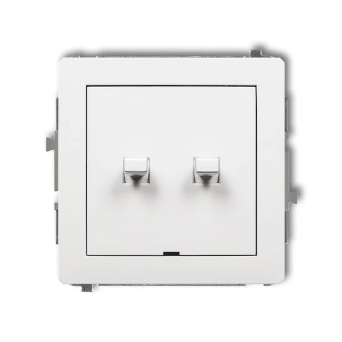10. DECO Mechanizm łącznika jednobiegunowego ze schodowym (dwa klawisze bez piktogramów, wspólne zasilanie) biały mat 25DWP-10.11 KA 34.08