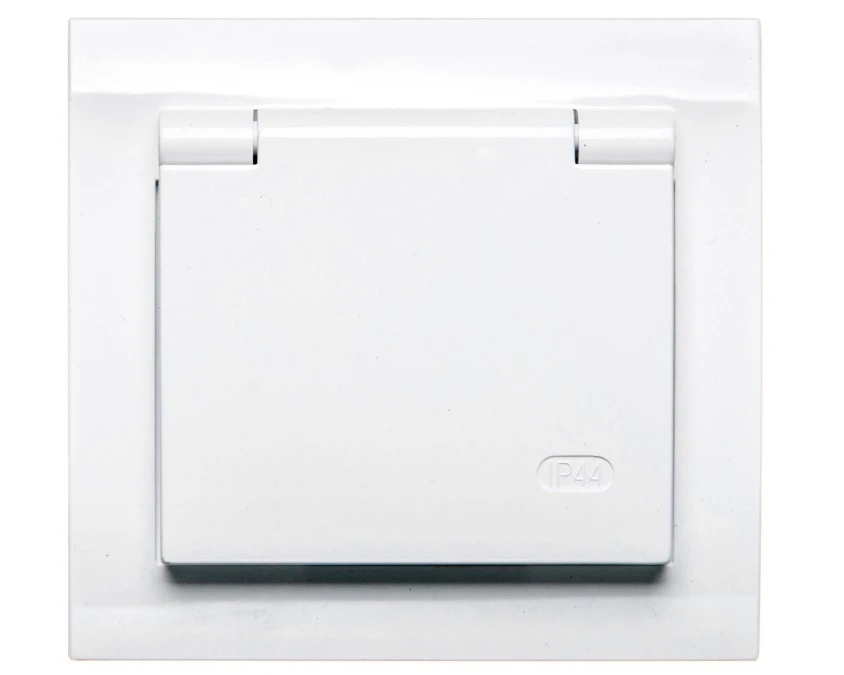 KIER Gniazdo bryzgoszczelne z/u IP44 z przesłonami klapka biała GPH-1WZP/00/w