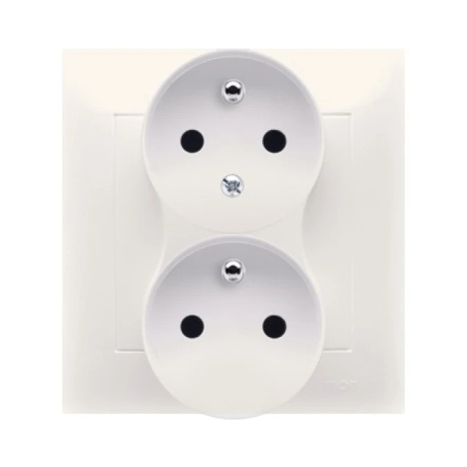 7. Simon 54 Gniazdo podwójne z/u z funkcją niezmienności faz z przesłonami 16A 250V krem DGZ2TZ/41 20.66