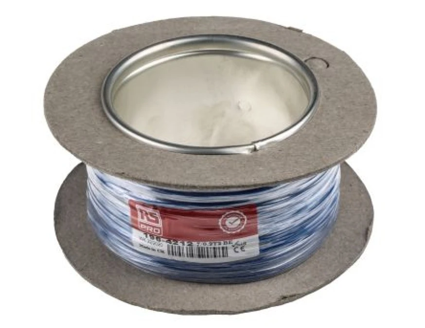 10. Przewód jednożyłowy linkowy, 0,2 mm², 7/0,2 mm, 24 AWG, PVC, 1 kV AC, Niebieski/Szary, dł. 100m, RS PRO 97.23