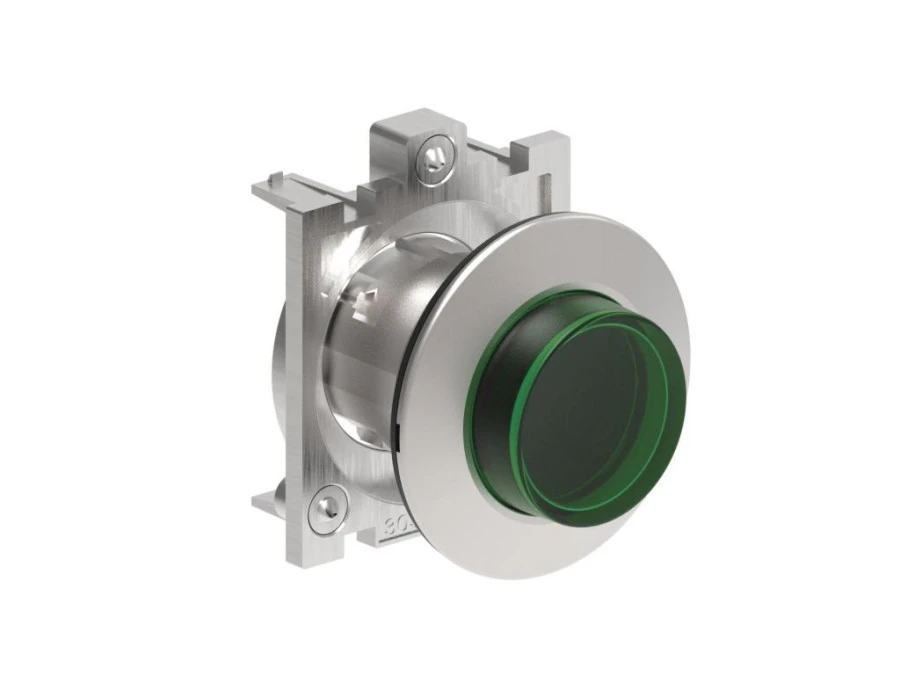 Metalowy przycisk płaski podświetlany fi30mm samoczynny powrót wystający Zielony LPFBL203