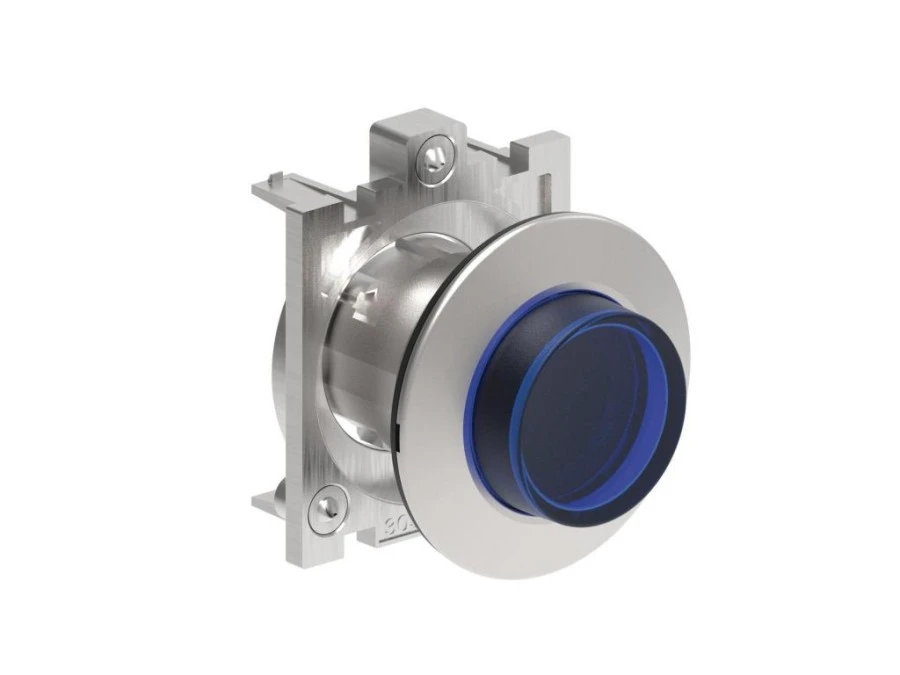 Metalowy przycisk płaski podświetlany fi30mm samoczynny powrót wystający Niebieski LPFBL206