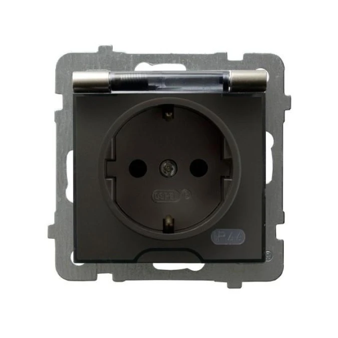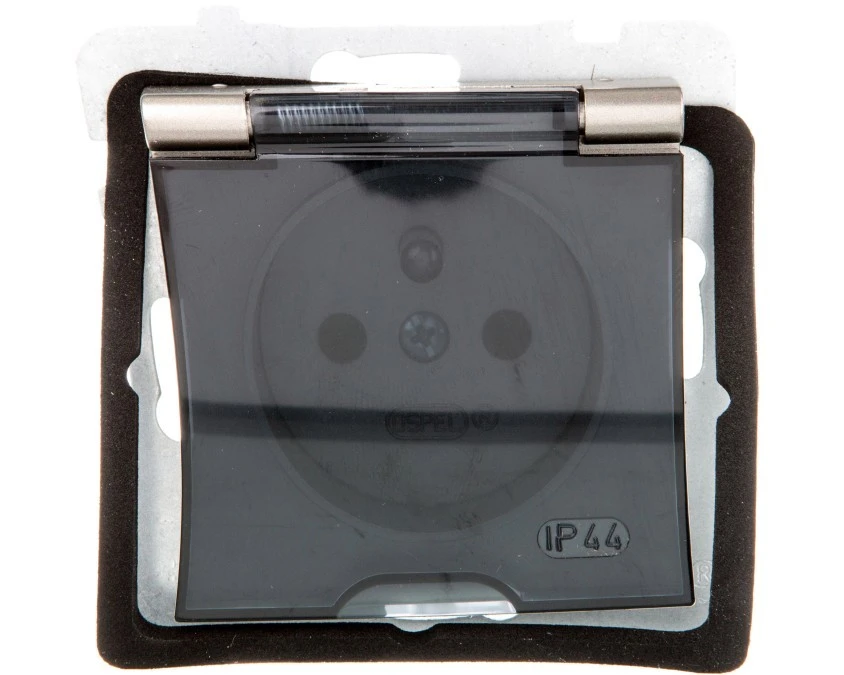 7. AS Gniazdo bryzgoszczelne z/u IP44 z przesłonami klapka przezroczysta satyna light GPH-1GZP/m/45/d 55.02
