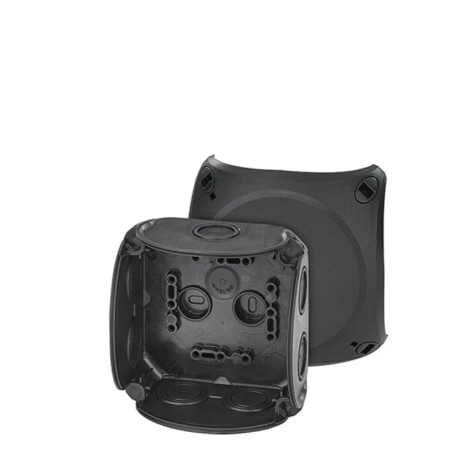 Puszka odgałęźna do instalacji wewnętrznych czarna IP66 z dławnicami membranowymi 104x104x70mm DK 0400 B 62000297