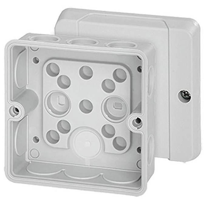 8. Puszka instalacyjna DE 9320 Z natynkowa bez zacisków 88x88x50mm hermetyczna IP55 szara HENSEL 31.61