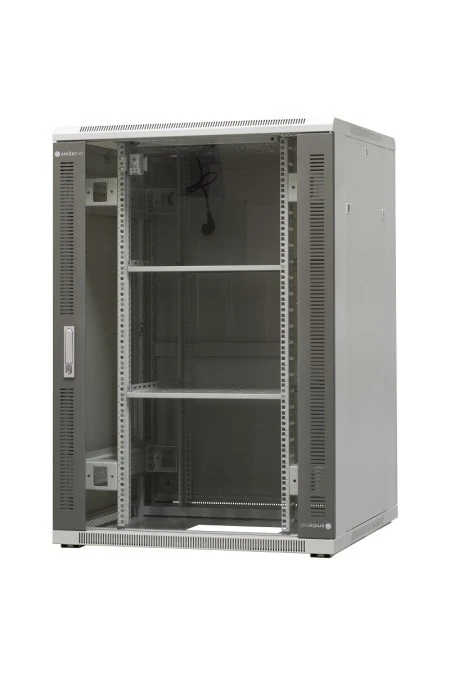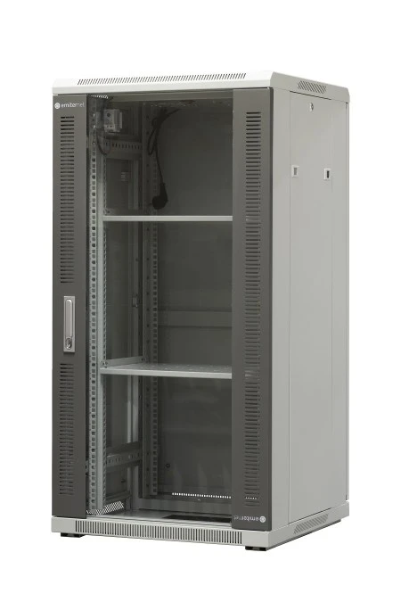 szafa ramowa stojąca EmiterNet Top, 24U, wym. 600X600x1180 (szer. x gł. x wys. mm), drzwi blacha/szkło w komplecie panel 2 wenty