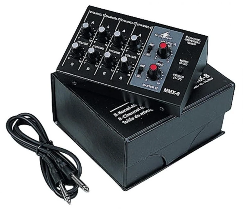 Miniaturowy mikser audio 8 kanałów mono, przełączanych mikr./linia MMX-8