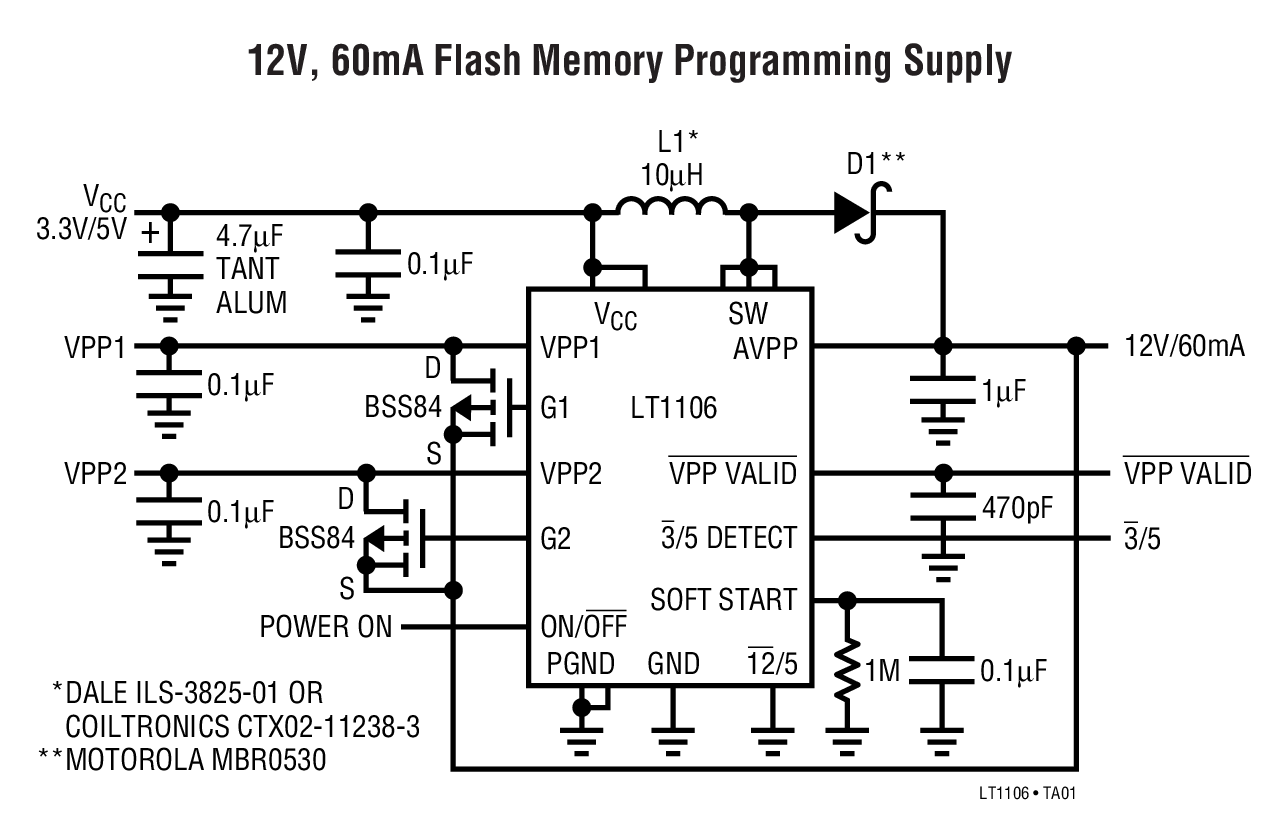 Micropower Step-Up DC/DC Converter for PCMCIA Card Flash Memory