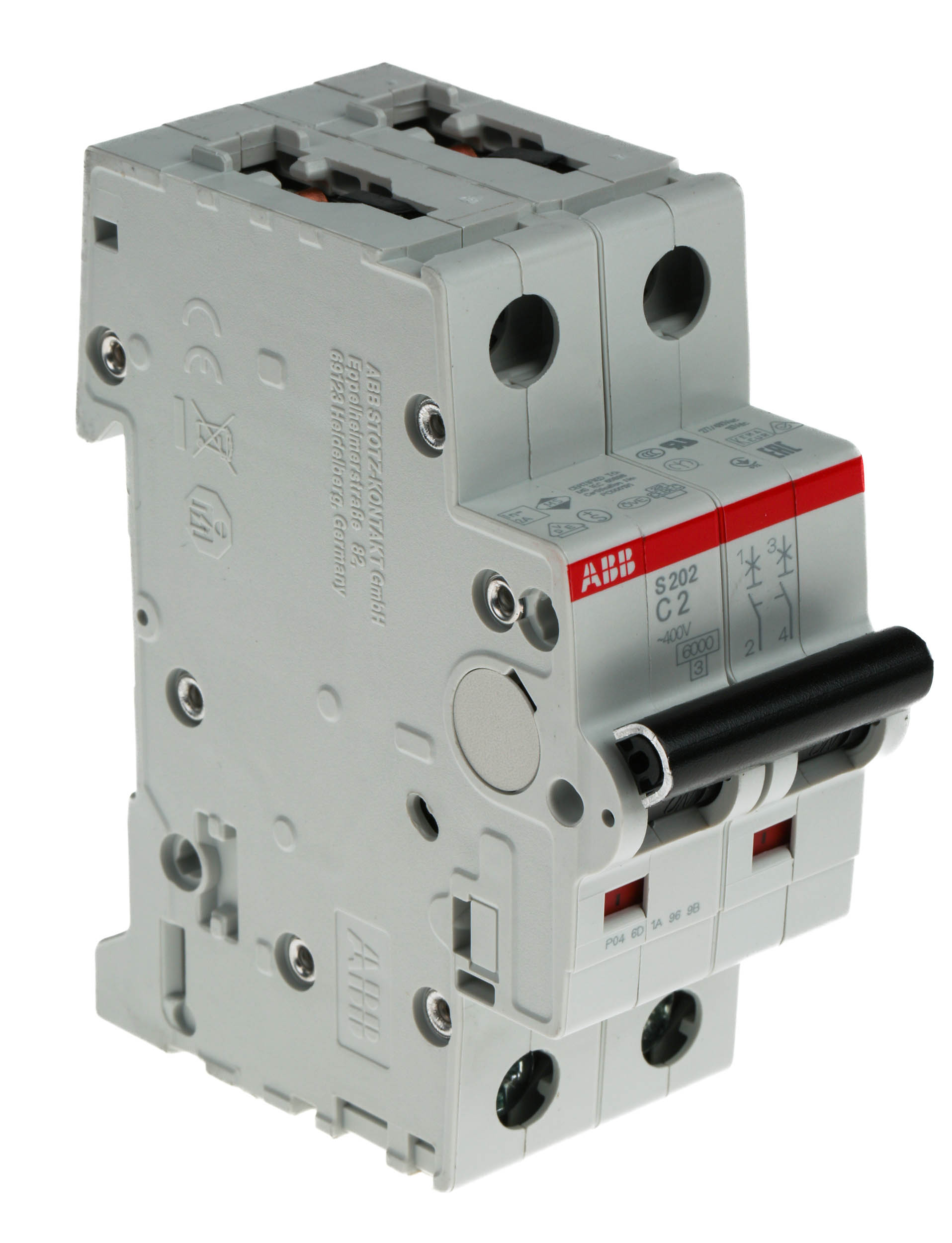 2. Wyłącznik nadprądowy MCB, Typ C, 2-biegunowy, 4A, 400V, na szynę DIN, ABB S202-C4, S200 298.87