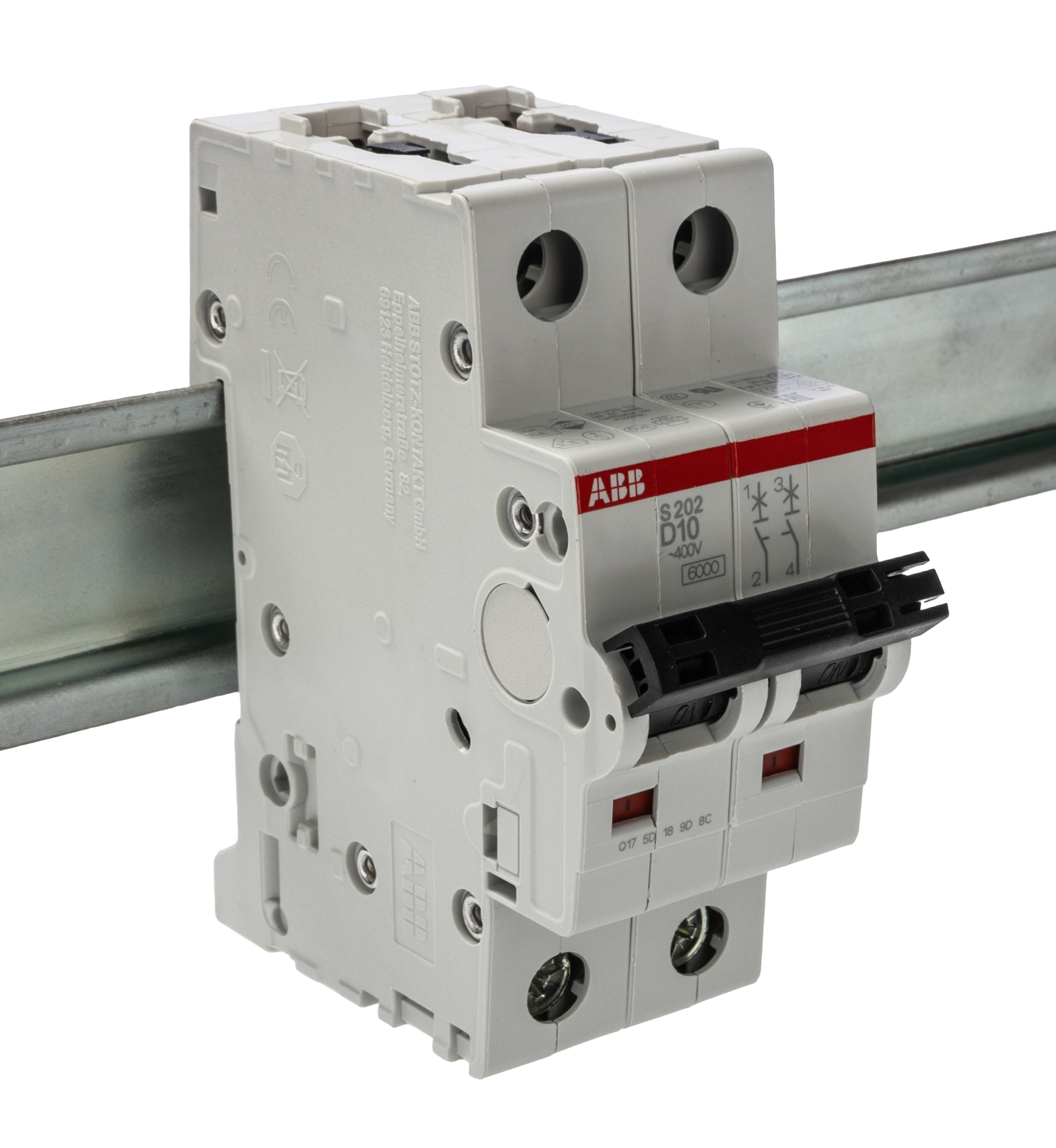Wyłącznik nadprądowy MCB, Typ D, 2-biegunowy, 10A, 400V, 125V, na szynę DIN, ABB S202-D10, S200