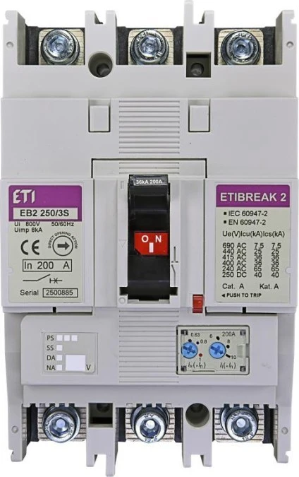 Wyłącznik mocy 3P, 36kA, wyzw. TM EB2 250/3S 200A 3p 004671082