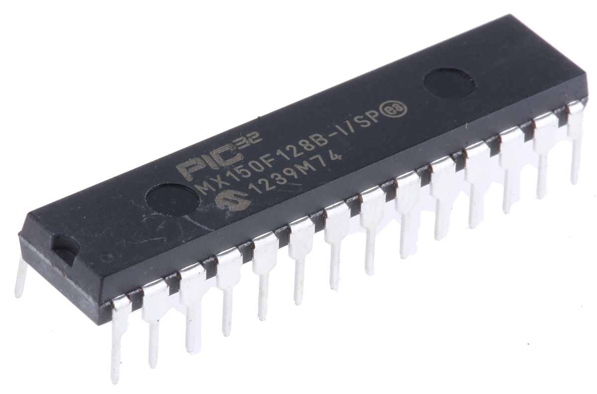 PIC32MX150F128B-I/SP MIPS32 M4K® microcontroller, 32-bit, 2.3-3.6V, 128 KB, SPDIP-28