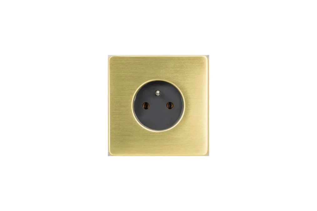 Gniazdko elektryczne szare pojedyncze ramka stal szczotkowana PVD Brass GN-SNPBR01S