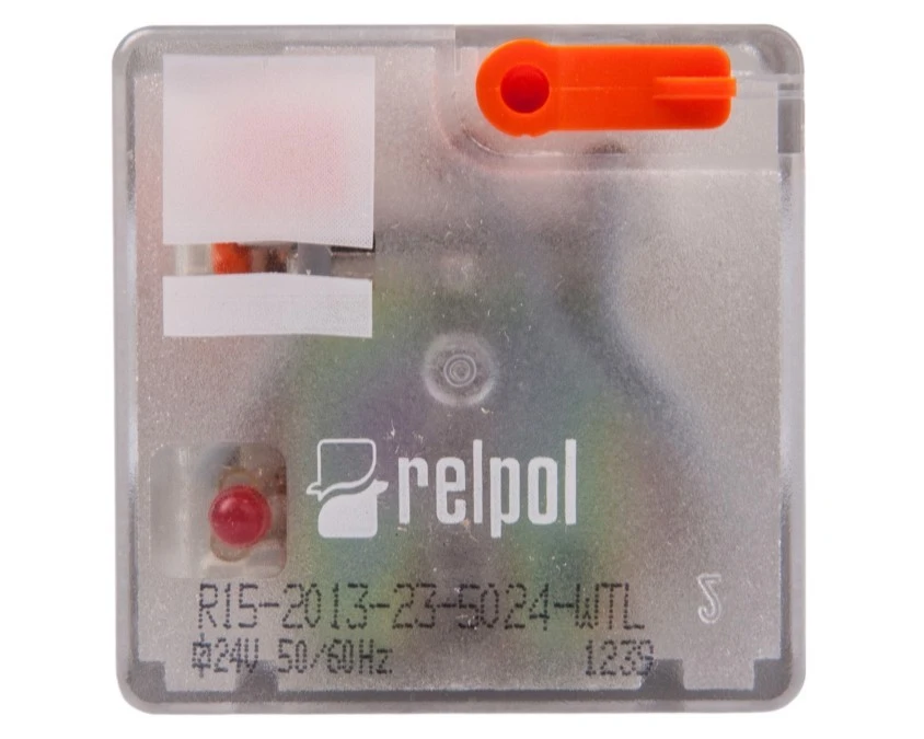 5. Przekaźnik przemysłowy 2P 10A 6V AC, dioda LED R15-2012-23-5006-WTL 804374 65.49