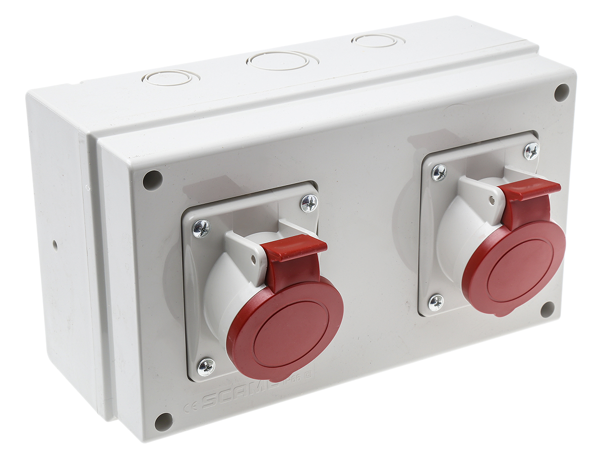 15. 16A Gniazdo 380 → 415 V. Scame Czerwony Montaż powierzchniowy IP44 703.62