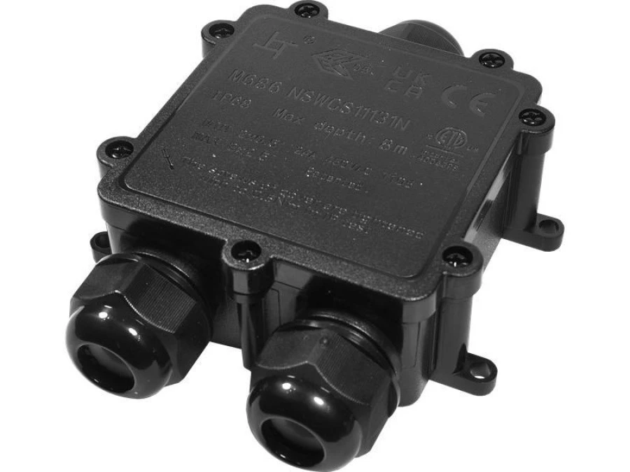 Kwadratowa puszka instalacyjna IP68 3 wloty + złącze 5 torowe