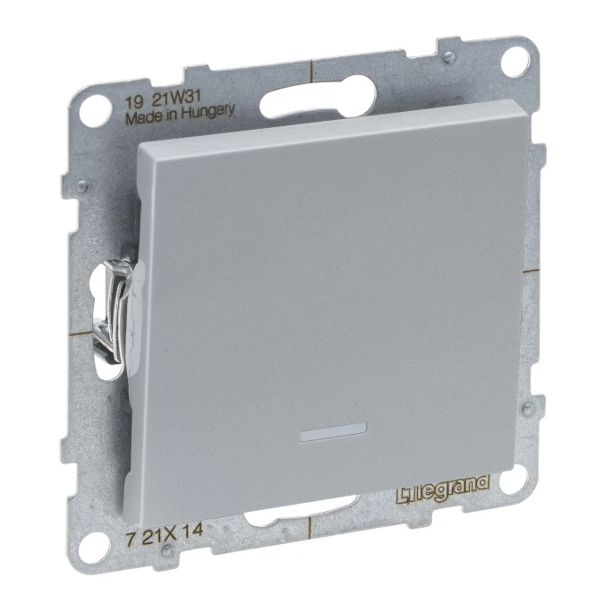 7. SIMON 54 Wyłącznik zwierny przycisk z podświetleniem LED bez piktogramu (moduł) 16AX 250V zaciski śrubowe srebrny mat DP1AL.01/4 42.46