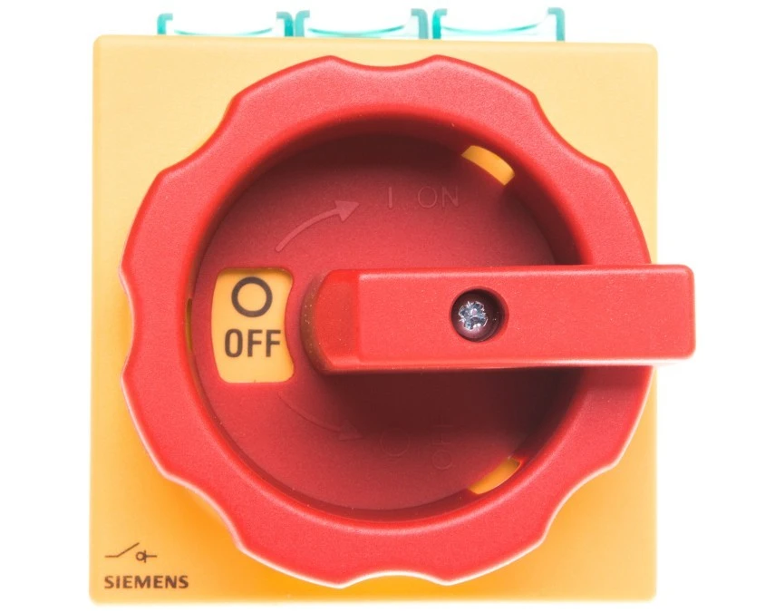 12. Rozłącznik główny/awaryjny 3P+N 63A 22kW AC23A 400V montaż na płycie z wałkiem pokrętło żółto-czerwone 4 otwory 3LD2514-1TL53 405.00