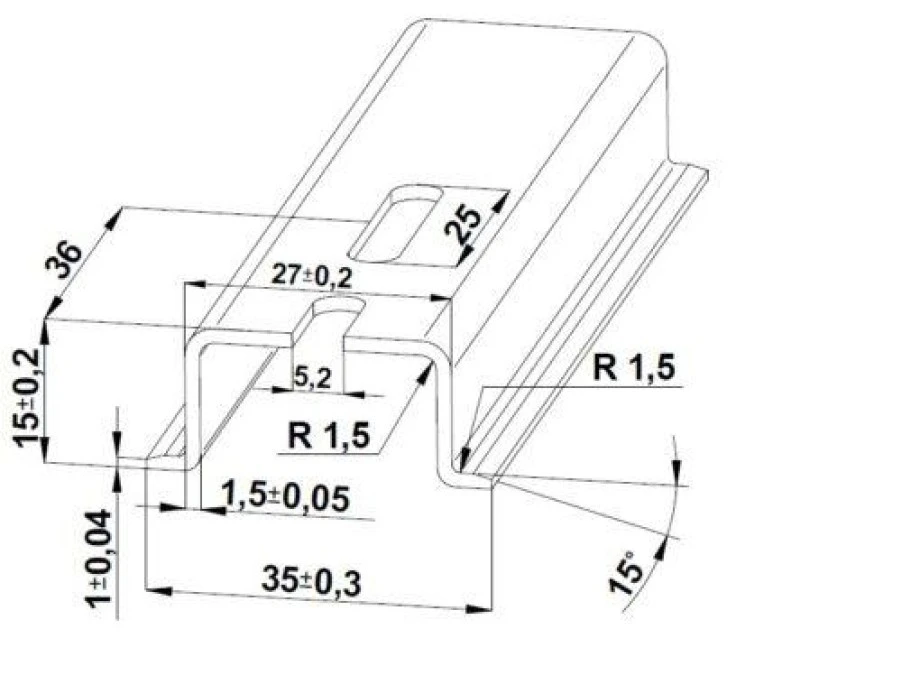 Szyna TS 35x15 ocynk (perforowana 5,2x25mm) - 1000 mm (za szt.)