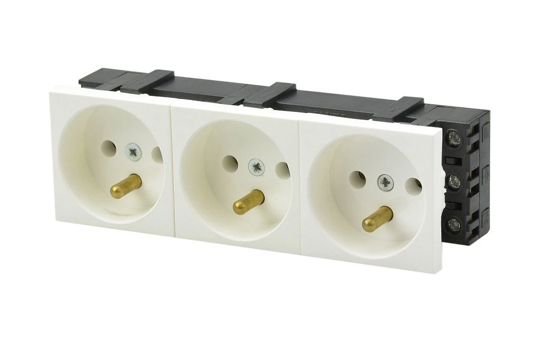 10. Gniazdo 230V 3x2P+Z 6M 135x45 białe Mediabox 40.87